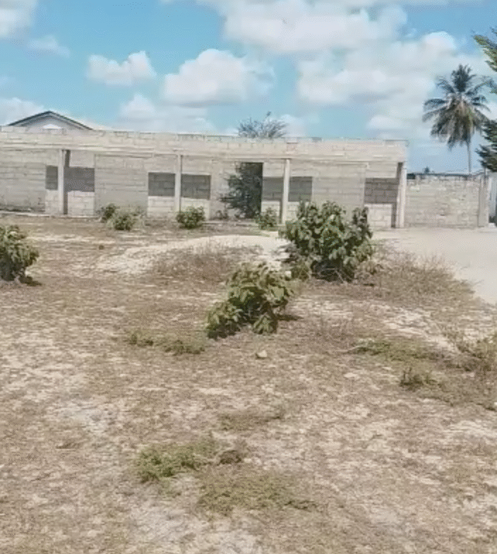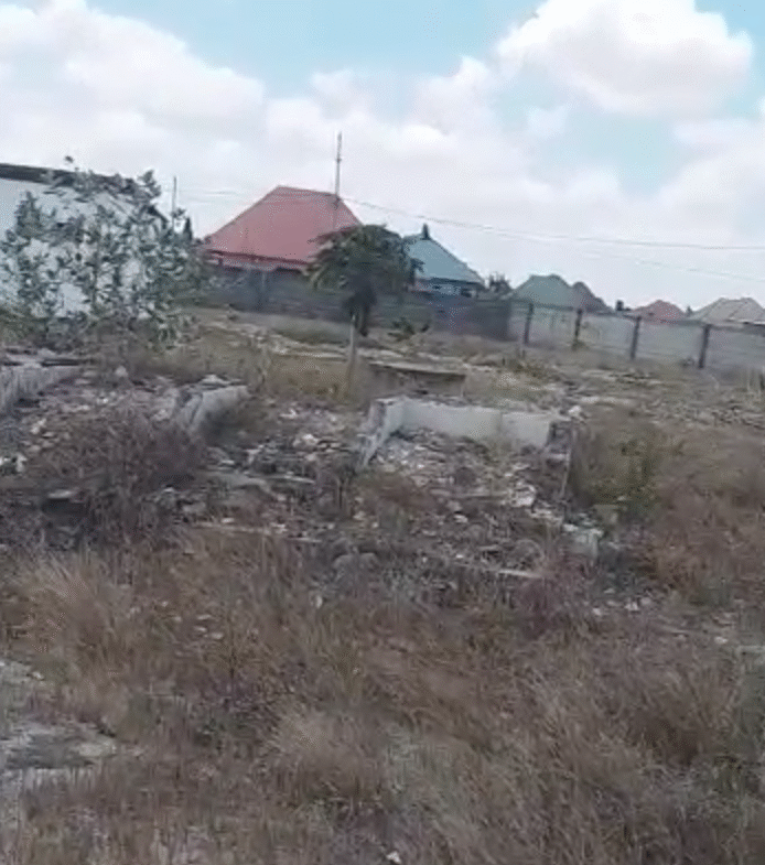 4 acre plot fully fenced with 6 semi-finished buildings including servant quarters and public toilet.